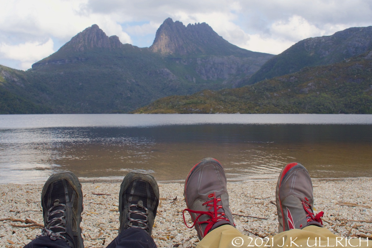 Much as Apsley Gorge had humbled me before nature, Cradle Mountain had humbled us humans before one another. Self-focused social media trends distort our perspective of our footprints in the world, like how our upturned boots mimicked the distant peak as we sprawled on Dove Lake’s white-pebbled shore. But set those shoes on rugged ground, and they’re the same size as everyone else’s. The indifferent earth renders us pissing, bleeding, sweating, laughing equals…and perhaps better co-travelers despite a difficult path.