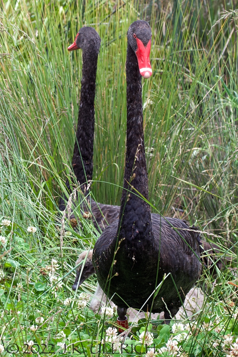 The stream led me to a family of black swans. Mom and Dad raised their necks in the long grass, forming a bizarre mirrored image. I kept a respectful distance and crouched where I could watch their chicks grazing. Next time I’m having a bad day, I’ll look at this photograph of cygnets eating clover: it’s like a visual happy pill. Once they’d nibbled their fill, their parents herded them back into the water and sailed off through the pink water ferns. Unlike some types of algae, it’s an indicator of good ecosystem health. It also makes for pleasantly unusual colors in wildlife photos.