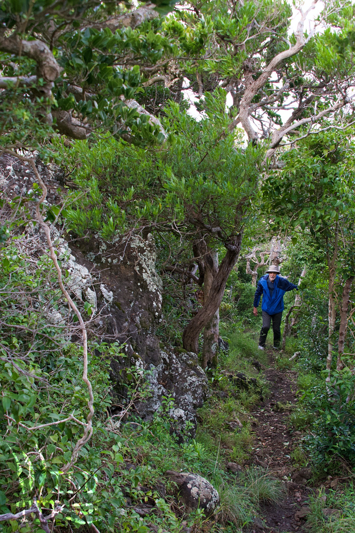 Rangers greeted us at the terminal. “Have you heard of myrtle rust?” one asked me, offering a brochure. I nodded grimly. The highly infectious plant fungus can devastate ecosystems. Identified on Lord Howe in February, attempts to control the outbreak had closed most of the island’s trails just weeks before our trip. Luckily the parks had re-opened in time, but decontamination measures remained to prevent the spread of spores. We sprayed our clothes and shoes with bio-alcohol before leaving the airport.
