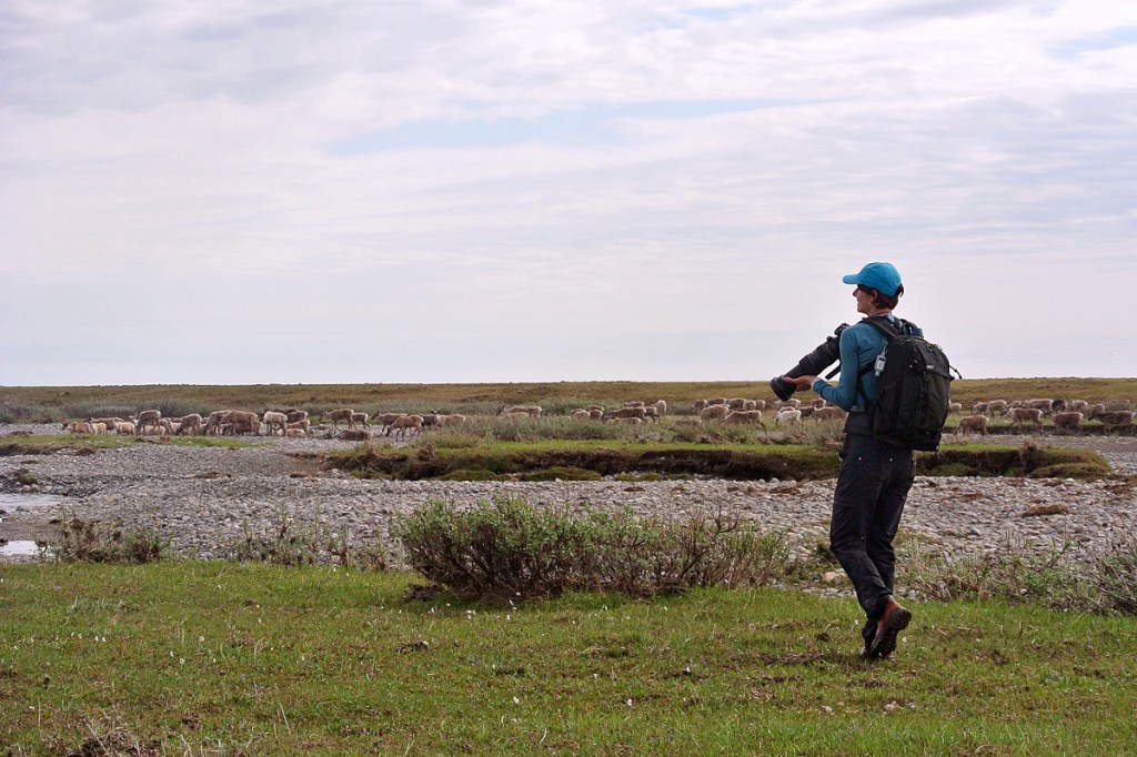 “Magical” is too frivolous a word for such a spectacle. These were not sparkly unicorns, but hardy deer adapted for some of the harshest environments on Earth. A double-layered coat keeps them warm in subzero temperatures. Broad snowshoe-like feet let them walk atop snow. Caribou are the only mammals whose reflective eye layer (the tapetum lucidum) changes color with the seasons. It turns from gold to blue, possibly helping the animals spot tasty lichen in dim winter light. Scientists still haven’t identified the mechanism that enables caribou to navigate or communicate through their epic migration. Part of me relished the mystery of these phenomena. My amateur naturalist side, however, yearned to explore everything in this incredible biome.
