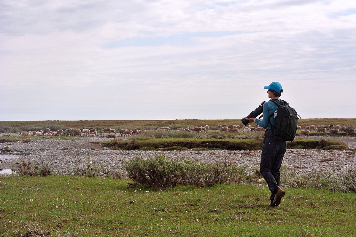 “Magical” is too frivolous a word for such a spectacle. These were not sparkly unicorns, but hardy deer adapted for some of the harshest environments on Earth. A double-layered coat keeps them warm in subzero temperatures. Broad snowshoe-like feet let them walk atop snow. Caribou are the only mammals whose reflective eye layer (the tapetum lucidum) changes color with the seasons. It turns from gold to blue, possibly helping the animals spot tasty lichen in dim winter light. Scientists still haven’t identified the mechanism that enables caribou to navigate or communicate through their epic migration. Part of me relished the mystery of these phenomena. My amateur naturalist side, however, yearned to explore everything in this incredible biome.